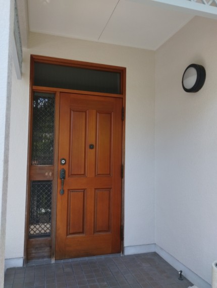 築20年以上、ドア外部の塗装面劣化あり。