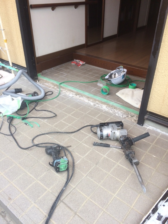 玄関引き戸取り替え、下レール埋め込み。 (箕面市)