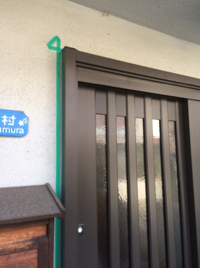 こちらは、外側の額縁のまわりを、コーキングをうつところです。