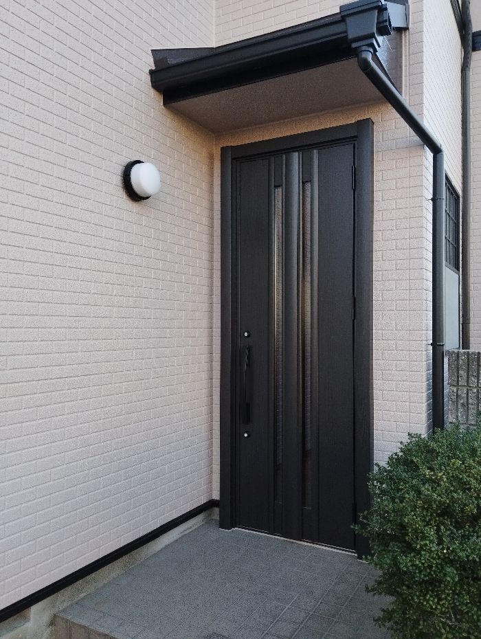 取り替え後の写真がこちらになります。見た目が変わってきれいなデザインのドアになって、お施主様も喜んでおられました!後は断熱効果に期待ですね!