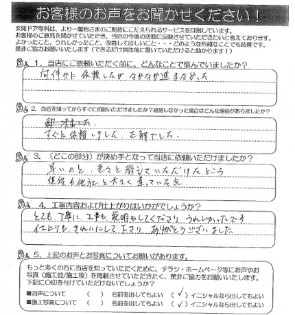 とても丁寧に、工事も説明もしてくださりうれしかったです。