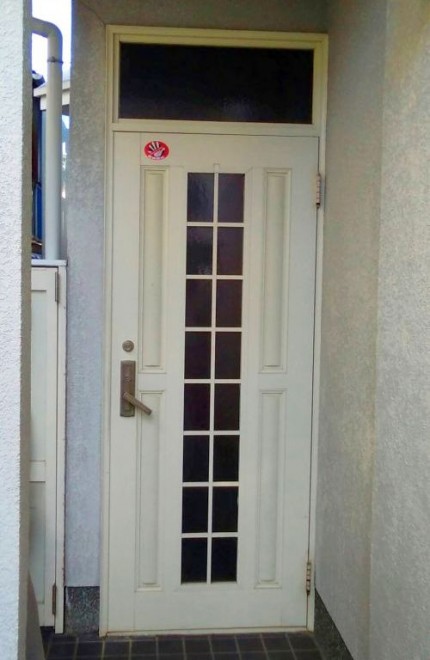 ランマ付きの白いドアは、ちょっと古いイメージでした。